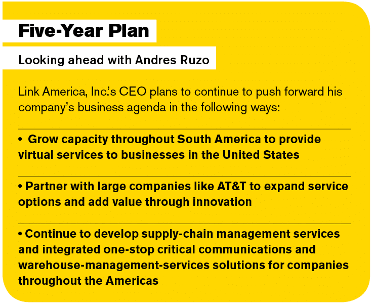 The original concept for Link America was to purchase used telecommunication equipment in the United States and resell it throughout the rest of the Americas. Now I am focusing on providing near-shore services to connect all countries in the Americas. I think we have a vicious circle in trading between the United States and countries like India and China, who are eating our lunch. I want to see the flow of trade shifted from east-west to north-south.