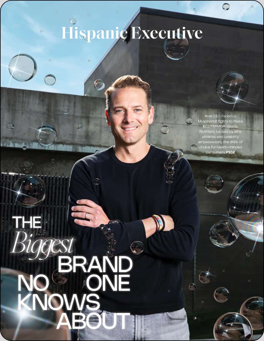 Fortunately, there’s no snake in sight during Hispanic Executive’s interview with Muyshondt, but the spirit remains. A collage of Kobe Bryant, the legendary Los Angeles Laker and possibly the greatest NBA athlete of all time, hangs behind him. Bryant took the snake’s name as his alter ego, to embody the fierce predator who could be counted on to strike at the pivotal moment. The basketball legend was an early investor in BODYARMOR, and his “Mamba Mentality” lives on at the company with the intent to take down the proverbial king cobra of the sports drink world: Gatorade.