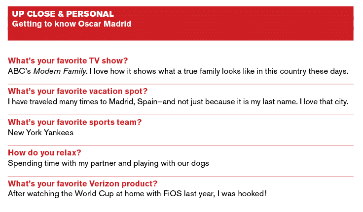 As the number-one US wireless-services provider, Verizon Communications Inc. owes much of its success to the millions of subscribers who turn to the telecom company every day for virtually all of their communication needs. Among those millions of subscribers are an increasing number of Hispanics, African-Americans, and Asians whose communication needs continue to evolve. To best reach this market, director of multicultural marketing Oscar Madrid has led his team in project efforts specifically designed to reach these groups with Verizon’s growing fiber-optic suite of services for television, voice, and Internet. Hispanic Executive sat down with Madrid to discuss specific initiatives he has worked on since joining the company in 1989 to better engage the ethnic consumer.