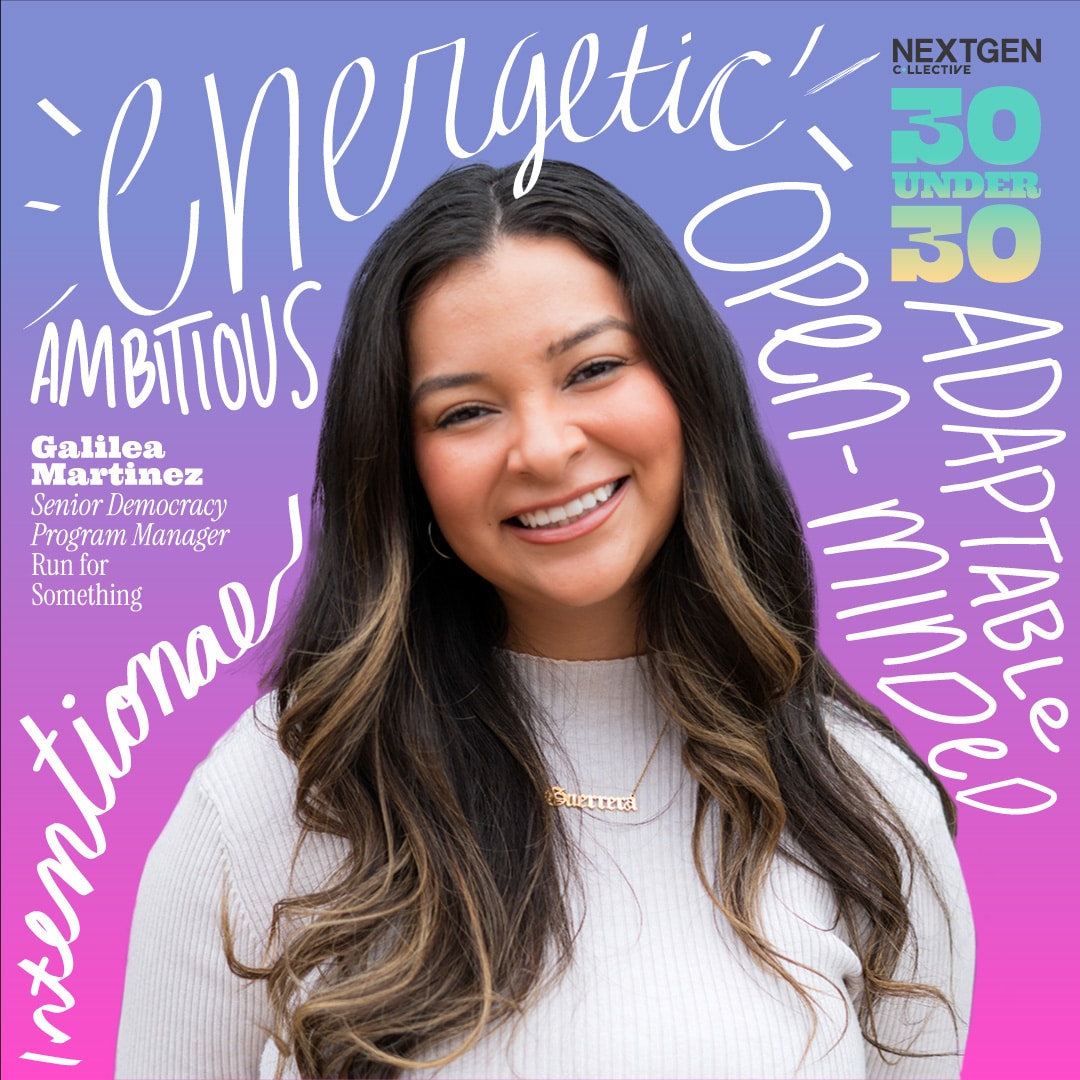 Galilea Martinez is the current senior democracy program manager at Run for Something, an organization dedicated to sourcing and supporting young candidates running for down-ballot offices. Martinez recruits and trains young progressives into administrator roles across the country and is currently focused on helping candidates unseat election administrators who participated in the insurrectional activities of January 6, 2021.