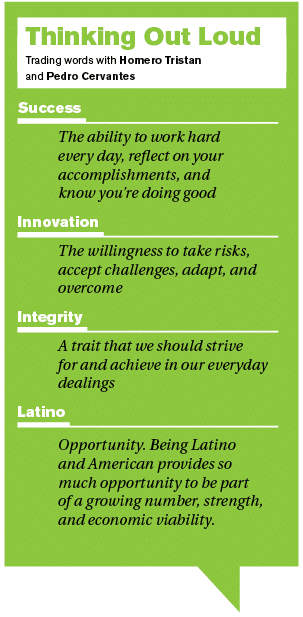 Tristan began his early legal career working for the National Labor Relations Board and then a national employment law firm, before venturing out and starting up his private legal practice in 2002. In 2006, Pedro Cervantes joined the firm as an associate attorney, and quickly advanced to managing partner in 2009. Since then, Tristan & Cervantes Attorneys at Law has evolved to include seven full-time attorneys and one of counsel attorney. The pair were both born and raised in Chicago where their law practice is headquartered. Both attorneys credit their Hispanic background for helping them emerge as innovative thinkers in their industry. “Being Hispanic business lawyers is an innovation in itself,” Tristan says. “Hispanic lawyers comprise a small percentage of practicing attorneys in Illinois, and Hispanic lawyers specializing in business legal matters comprise a very small percentage of practicing Hispanic lawyers.”