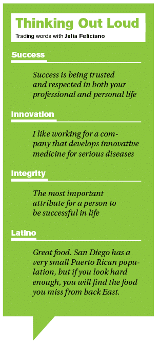 Feliciano made her mark at Wyeth by earning trust and respect, which for her is the ultimate feat in any role. In corporate America, she explains, “legal” can be viewed as a squad of naysayers, particularly by marketers who tend to want to push boundaries. Building inroads with internal constituents is a priority perhaps as high as ensuring the company is protected and compliant, she says. After leaving Wyeth (now Pfizer), in 2005 she went to Elan Pharmaceuticals, which focuses on drugs for multiple sclerosis and Crohn’s disease, as well as Alzheimer’s research. She joined Amylin in 2007, and is now a vice president of legal.