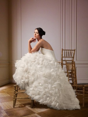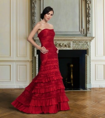 With more time-intensive designs (a highly intricate Liancarlo gown uses 75 yards of finely cut fabric) price points naturally rose over the next two decades, now ranging from $2,700 to $7,000. “I’ve never been scared of China or business going overseas, because what I do is art, not mass production,” he says. “We’re cutting five dresses at a time, not 700.”
