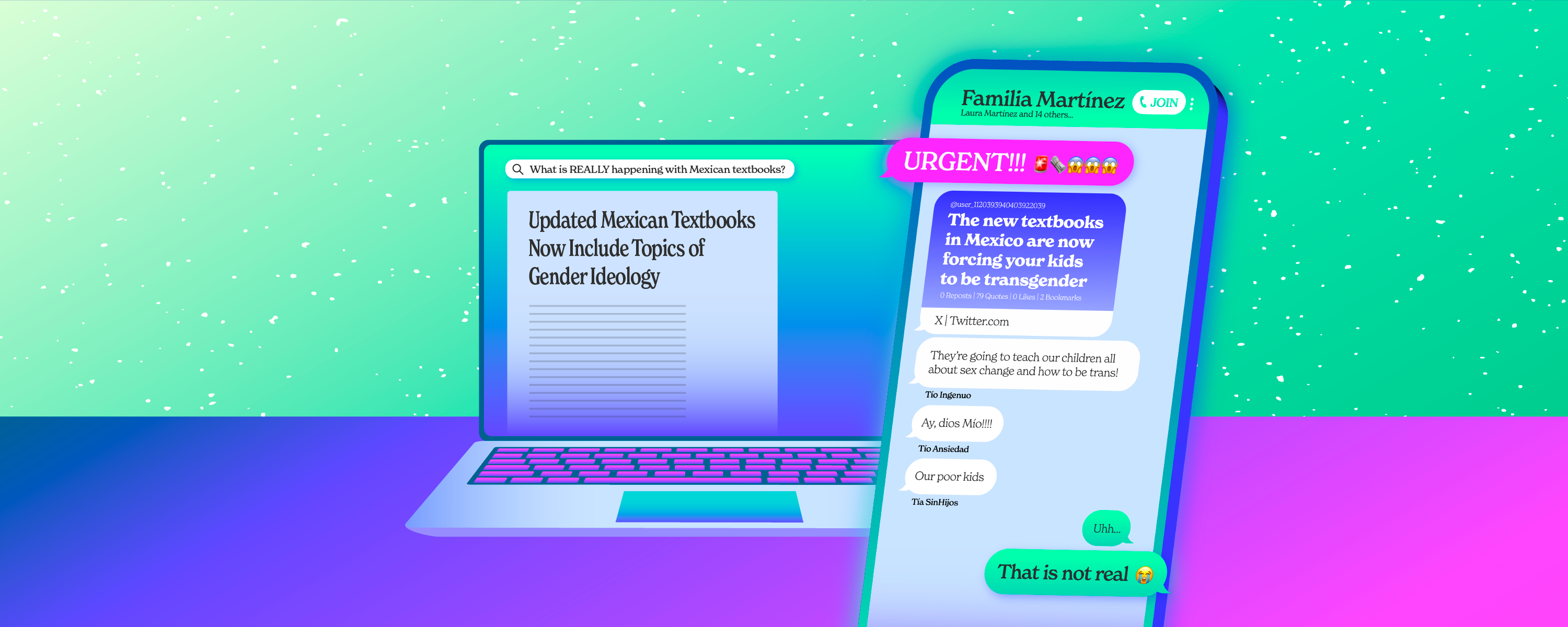 “URGENT!” my phone screen flashed with a WhatsApp notification from the Martínez family group chat. The message included plenty of emojis, including a fire alert, a rolled-up newspaper, many shocked faces, and finally a link to a post on X, formerly Twitter, in which some random person wrote something incendiary about Mexico’s new textbooks for elementary school children.